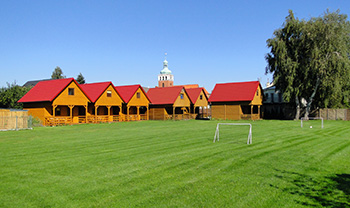 Trampolina, zjeżdżalnia, huśtawka, piaskownica, boisko do gry w piłkę nożną